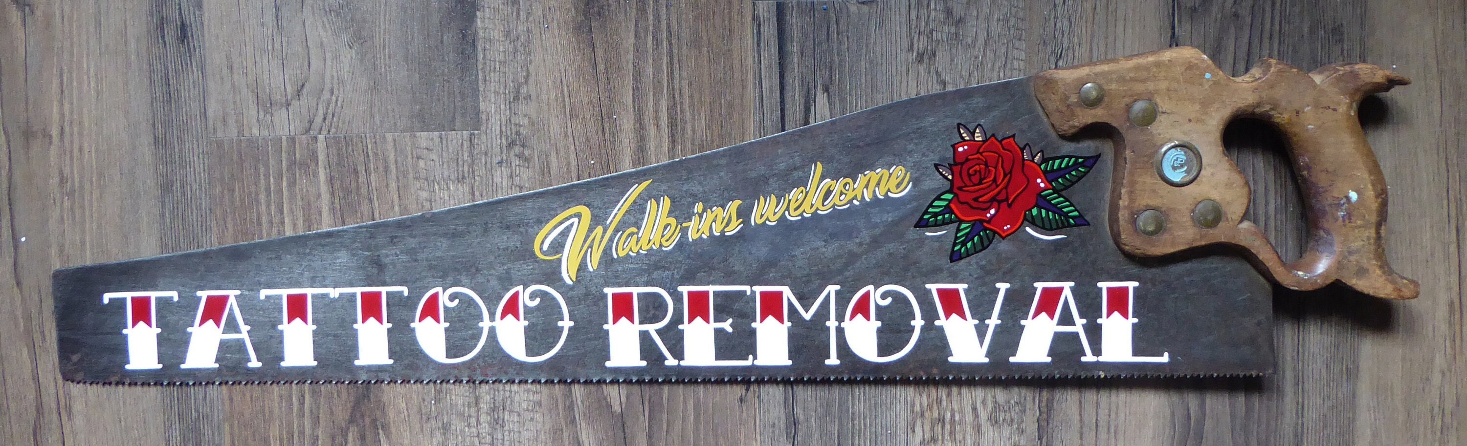 Walk Ins Welcome Tattoo Removal Hand Painted Vintage Saw Etsy