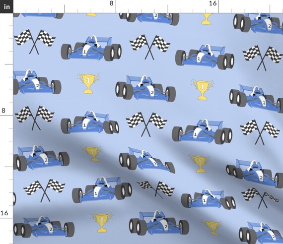 Racing Fabric Race Cars With Trophy By Vivdesign Blue Boys Etsy